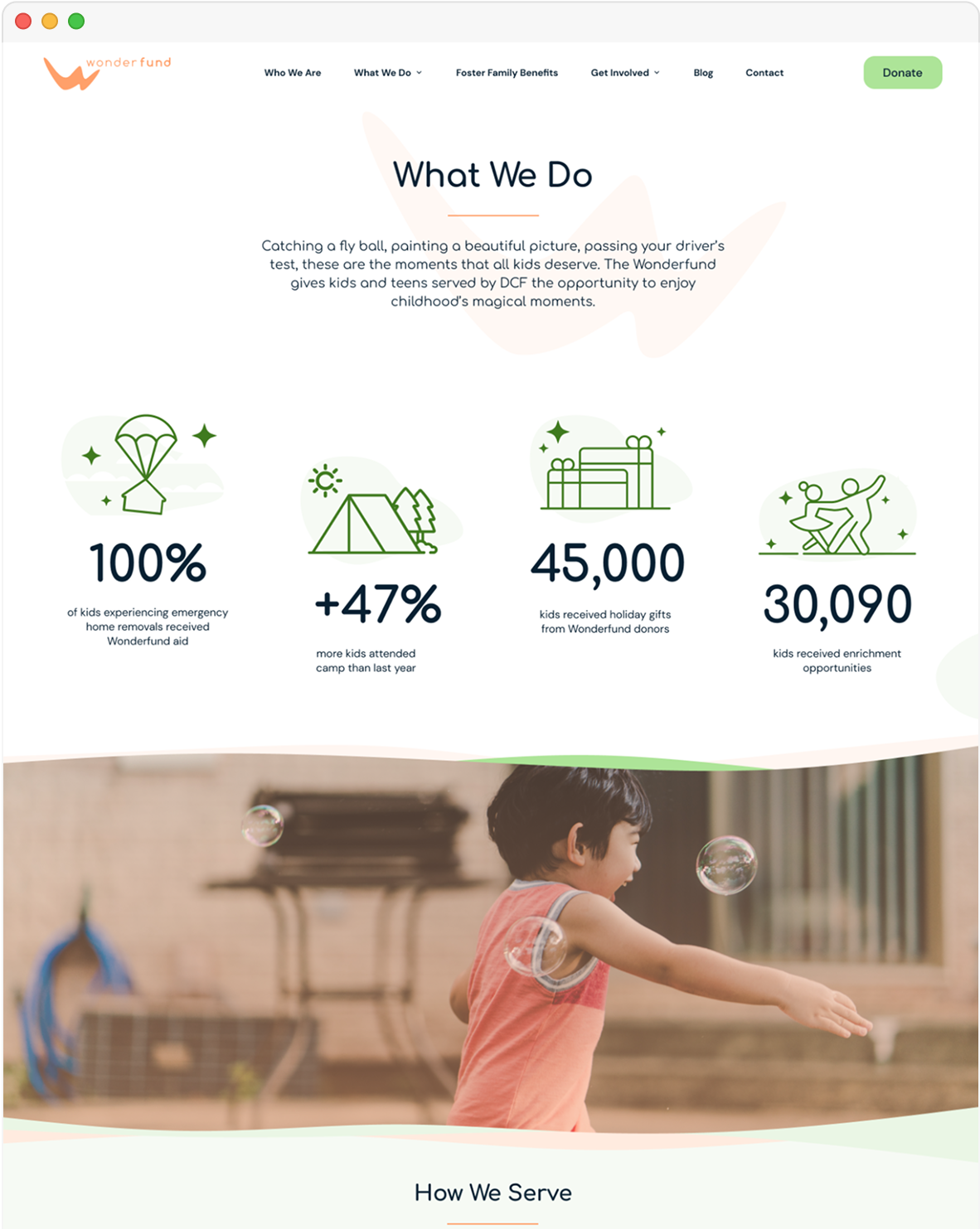 Wonderfund partnered with Getfused to create and maintain an online experience that drives awareness, donations, and support for children in need.